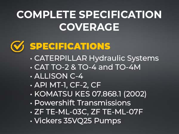 This fluid is a direct replacement for OEM Caterpillar TDTO 10W drive train fluids.