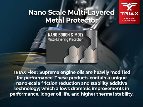 TRIAX Fleet Supreme Diesel Oils come in 5W-40, 5W-30, 10W-30 and 15W-40 viscosity grades.