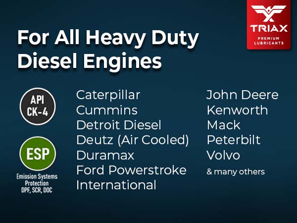 The TRIAX Fleet Supreme product line is a our flagship heavy duty diesel oil and one of the most sought after diesel oils. Its a full synthetic, friction modified engine oil designed for heavy duty turbo diesel engines requiring an API CK-4 specification, with full backwards compatibility to CJ-4 and CI-4. It also exceeds a wide range of OEM specifications such as VOLVO VDS-4.5, Cummins, Detroit Diesel, Mack, Ford, Chevy and many others in all types applications (heavy duty highway, pick-up and haulers).