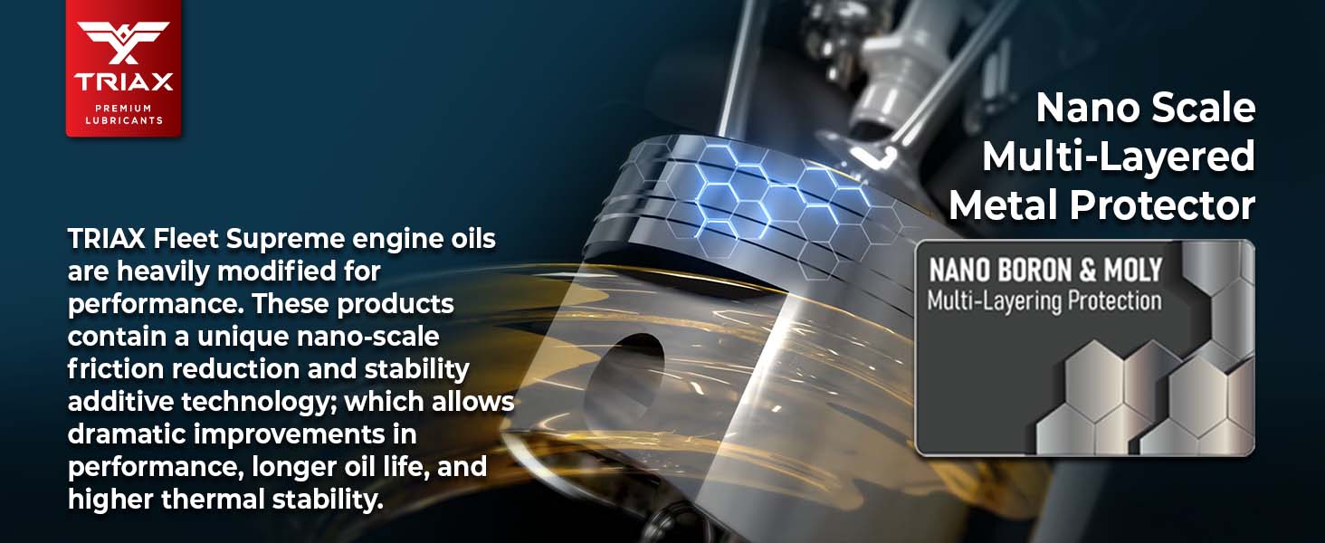 TRIAX Fleet Supreme oils are known for eliminating injector stiction in HEUI oil pressure injectors, quiet engine operation, significantly improved fuel economy and extreme drain intervals.
