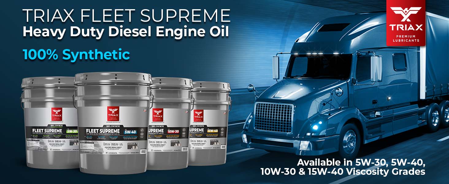 TRIAX Fleet Supreme Diesel Oils come in 5W-40, 5W-30, 10W-30 and 15W-40 viscosity grades.